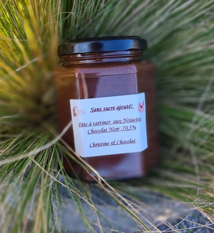 Pâte à tartiner au chocolat noir (70,5 % de cacao) et aux noisettes locales et bio (275gr),